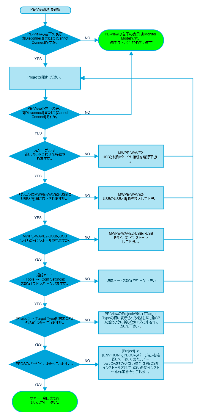 [PE-View9]起動際にPE-View9が通信できません ([Disconnect] もしくは [Cannot Connect] のステータス)