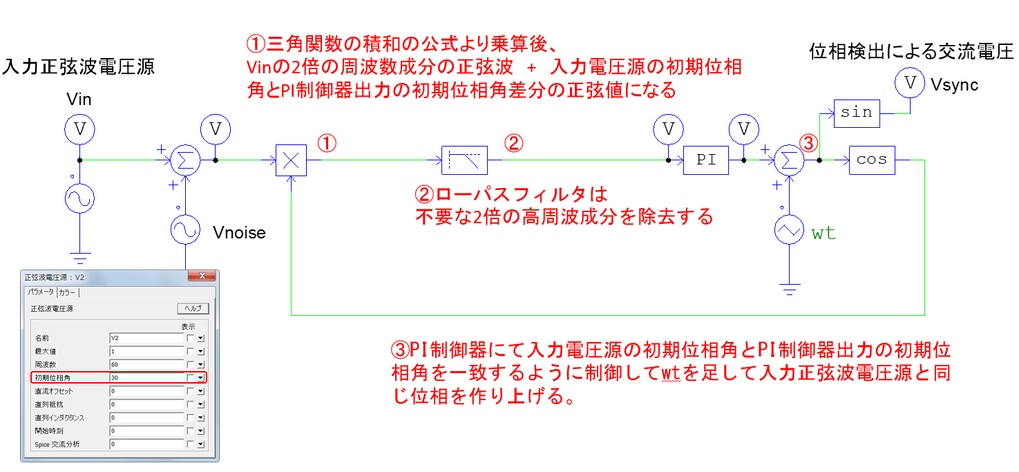 サンプルファイルがC:\Powersim\PSIM11.1.x_xx_x\examples\other\"phase lock loop.sch"になります。